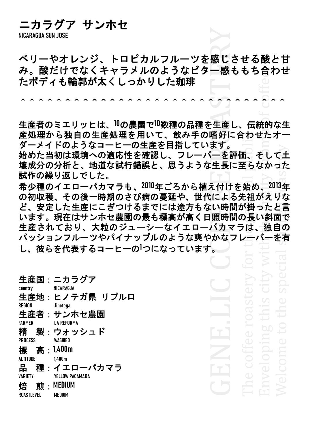 【 NICARAGUA 】 サンホセ農園 イエローパカマラ ウォッシュド 100g